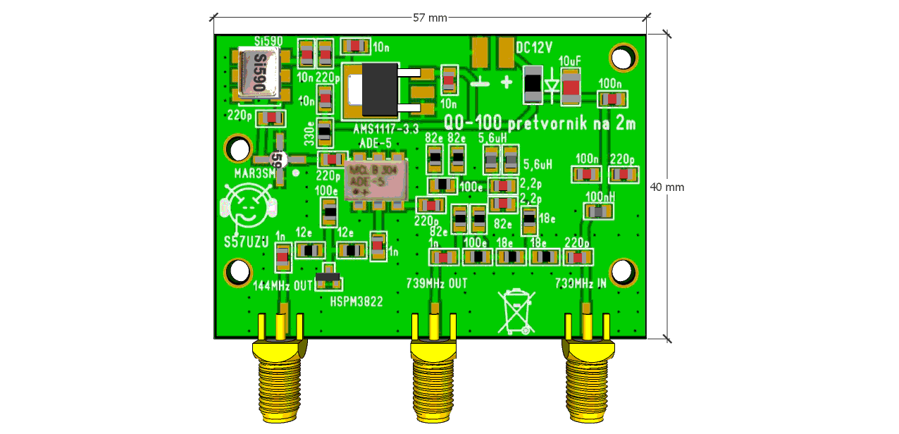Z drugačno vrednostjo oscilatorjeve frekvence lahko uporabimo ta konverter tudi za pretvorbo na 2m ali drugi frekvenčni pas. Spodaj je slika takšnega konverterja z oscilatorjem Si590 firme Silicon Labs.